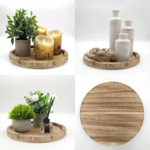 Enhance your home decor with Homeey’s Decorative Rustic Wooden Serving Tray. This versatile round wood plate serves as a charming centerpiece, a stylish candle holder, or a functional serving tray for your kitchen or living room.